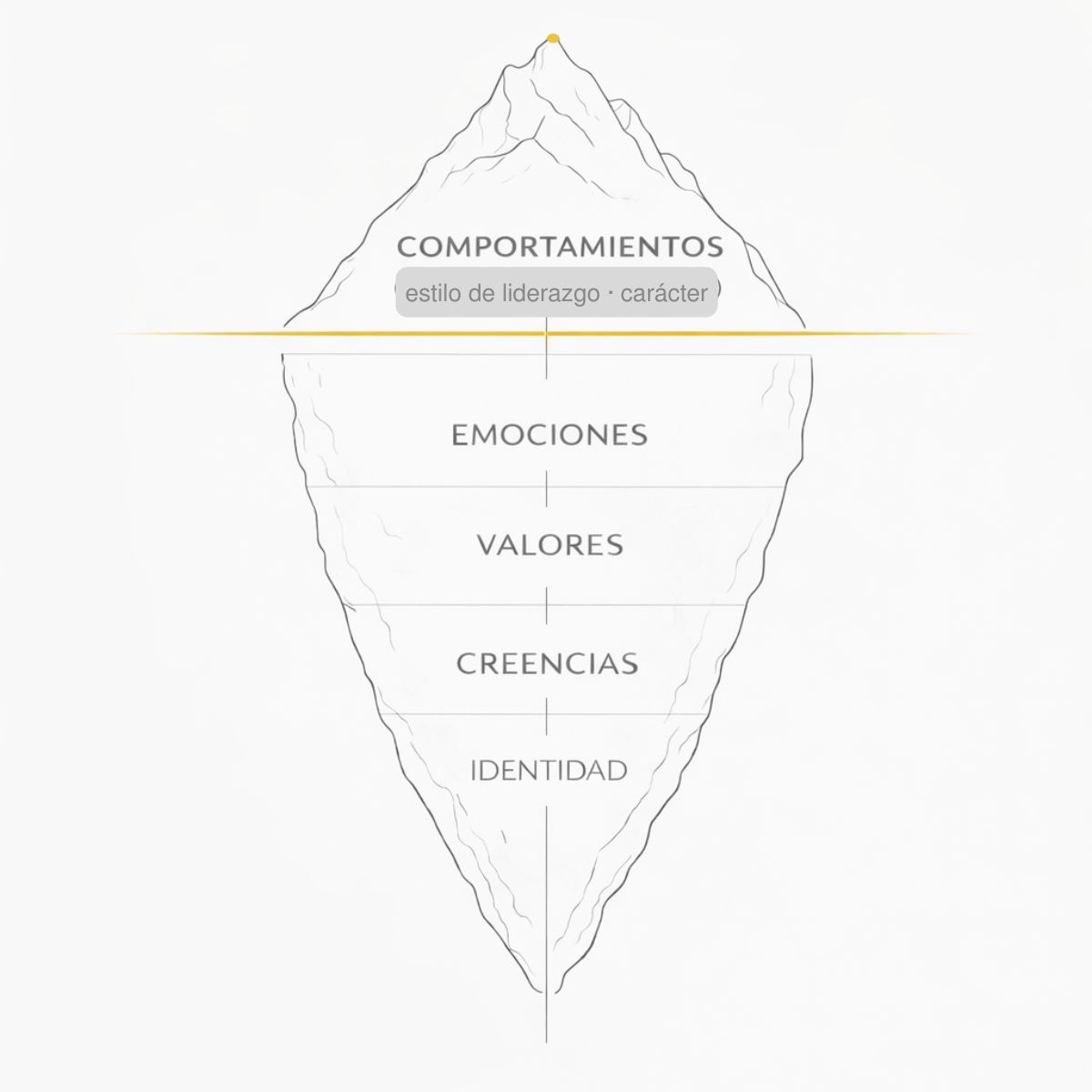 No trabajo en la punta del iceberg (el comportamiento visible). Voy a la raíz: creencias limitantes, identidad y gestión emocional.